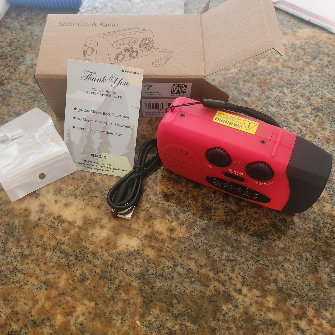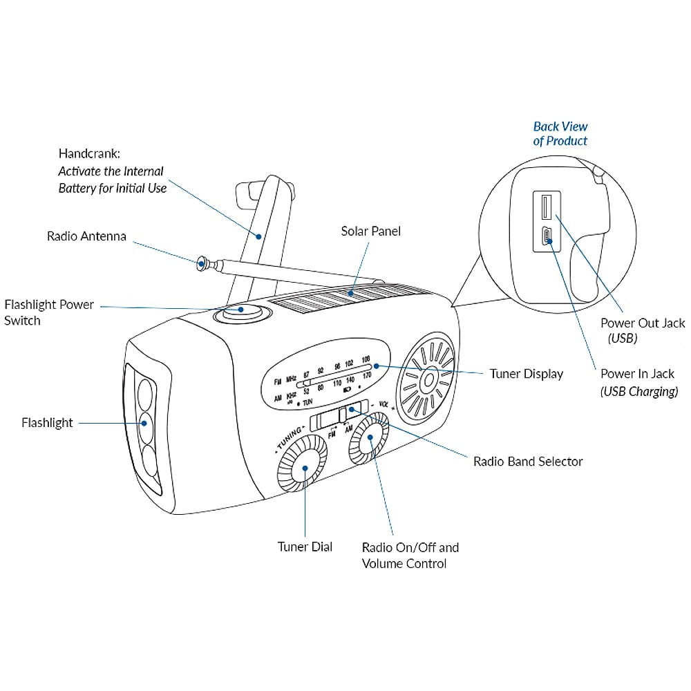 Just received this & wow, what an amazing little device. Radio is clear sounding, flashlight gives off plenty of light, has a solar panel for maintaining charge, a usb cord to charge my phone (it works!) & easy enough to crank up your get it started. A great idea to keep in the house, car or any outdoor adventures. Will be purchasing another.